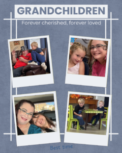 My grandchildren mean so much to me. Four of them live three hours away and I wish I got to see them more. Our oldest will be 8 in October and I cannot figure out how he has grown so fast. We have five ranging from almost 3 to almost 8. The one I no longer get to see is the only one that lives close and to go from seeing her multiple days a week and keeping her and taking her places with us to no contact is something I cannot get a grasp on. I see so many others sharing their stories and it is heart breaking. The bad thing is that I always agreed to watch her no matter what because in the back of my mind I feared the day would come that this could happen. I watched my son grow up without his brother due to his mom doing the same thing so it was already a sore subject with our family. I poured my heart into my precious girl and now I don’t even know what she thinks happened to her GiGi and why she doesn’t get to see her anymore. A piece of me is missing. In this mess of caring for mom and life changing being her GiGi and having her with me was the one thing that was still pretty much the same from the old life before caring for mom. I was pretty sure being her GiGi was the one thing I got right in life but now I just don’t know.